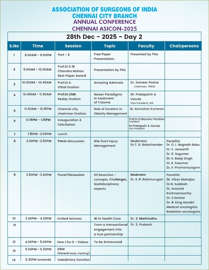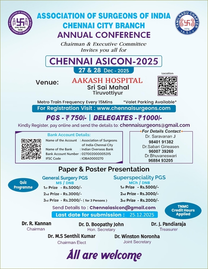 © 2023-2026 Association of Surgeons of India - Chennai City Chapter. All Rights Reserved. Web Solutions by i - Net Concepts